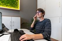 • Moderne Arbeitsplätze mit höhenverstellbaren Schreibtischen und moderner Technik
